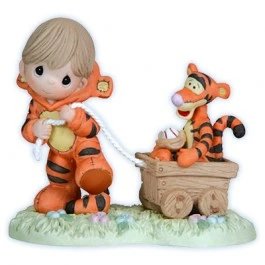This little boy is dressed up as Tigger as he Happily pulls his pal Tigger around in the wagon. This Figurine holds a special meaning to Put a Little Bounce in your Heart.